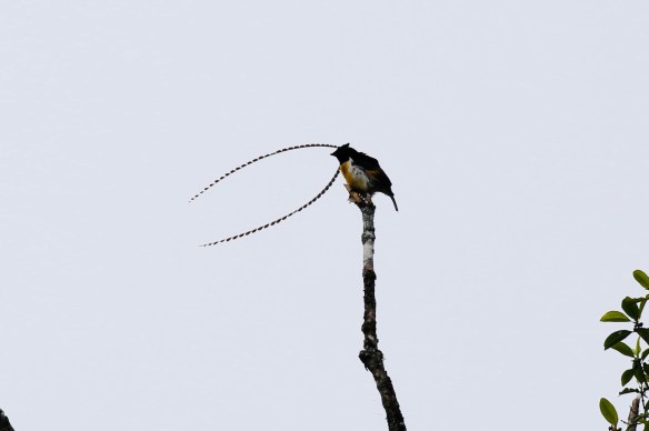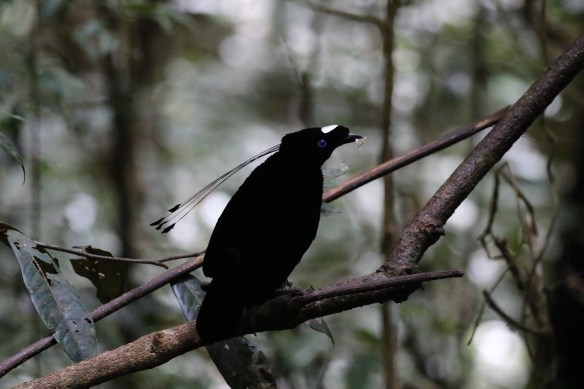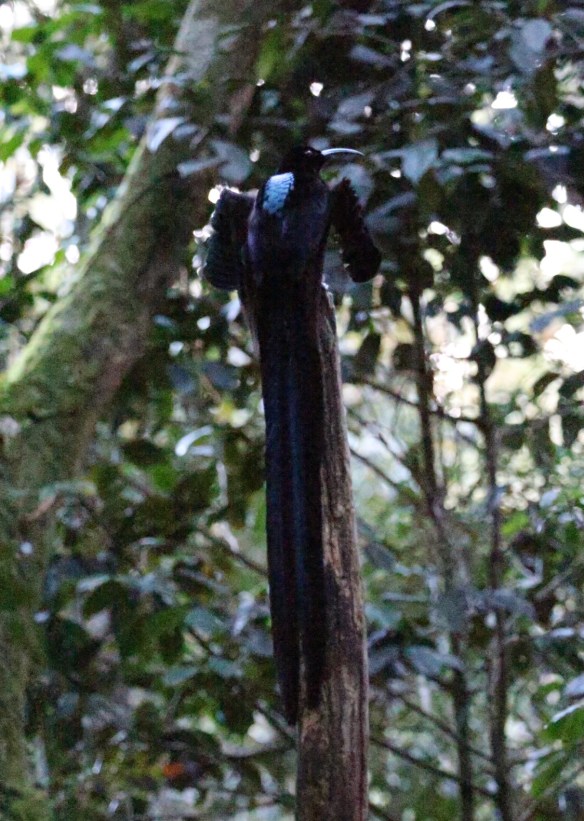 Bij de Western Parotia hebben we na 2 keer 2,5 uur wachten geluk en zien we het mannetje zijn ballerina dans uitvoeren, een magisch moment. (Klik hier voor een filmpje van hoe dit er uit ziet).