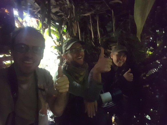 De beste soort die we zien is echter de Golden Masked Owl. Deze soort is pas in 2015 herontdekt (met de laatste waarneming daarvoor uit de jaren 80) wat ons tot een zeer selecte groep vogelaars rekent die deze soort op de lijst heeft. Waarschijnlijk heeft het zo lang geduurd omdat hij is terug gevonden op de minst waarschijnlijke plek waar je zou gaan zoeken; midden in de palmolie plantage! We gaan er 3 avonden op uit en rijden langzaam met groot licht aan tussen de eindeloze palmrijen, wat ‘s nachts met de lange schaduwen een haast mysterieuze aanblik geeft. We hebben geluk want op twee van de avonden zien we de uil; een goudgele vogel met een grote ronde kop die ons kort aanstaart vanaf het palmblad om daarna (voordat we een foto kunnen nemen) als een spook weer in het donker tussen de palmbomen verdwijnt.