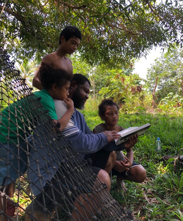 Rond de baai liggen verschillende kleine dorpjes die elk bestaan uit een paar huisjes van hout en palmbladen. Wij verblijven bij Waiyaki en zijn familie, die al 300 jaar aan deze baai wonen waarbij het leven door de tijd waarschijnlijk niet veel veranderd is; alles gebeurt hier met houten kano’s, om vis te vangen maar ook voor kinderen om naar school te gaan.