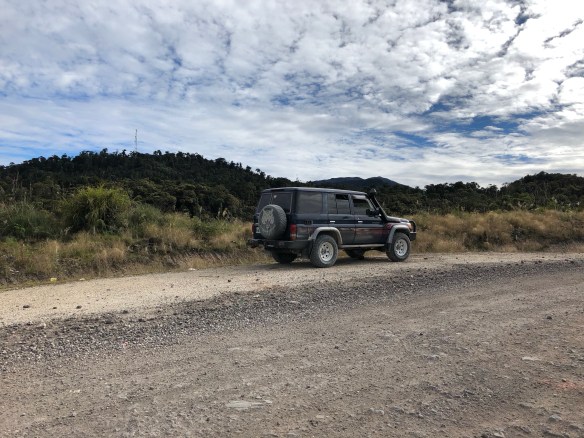Nadat de vlucht naar Tari niet bleek te gaan was er maar één andere optie om er toch te komen; onze tickets omboeken naar Mt. Hagen en vanaf daar 6-7 uur met een jeep over een hobbelweg door de hooglanden. Onderweg legt onze bijrijder uit dat er in de de regio waar we naar toe rijden vaker gedoe is met geweld en dat het in de brand steken van het vliegtuig (en ook het vliegveldgebouw en het huis van de gouverneur) een typisch voorbeeld is van “eerst doen en dan pas nadenken”.