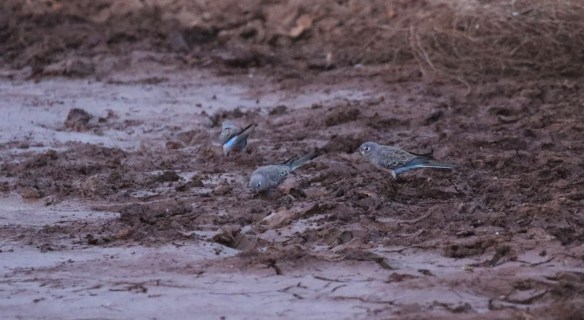 Vogels hebben ook last van wegblijven van de regens en sommigen stellen zelfs het broedseizoen helemaal uit. De Malleefowl is zo’n voorbeeld; normaal gesproken in deze tijd van het jaar zijn ze bezig met het maken van grote natte bladerbergen waar ze hun eieren in begraven om ze door de warmte van het rottingsproces te laten uitbroeden. Natte bladeren zijn er momenteel niet en daarmee is er ook nog geen enkele actieve “Malleefowl mount” gezien dit jaar. Gelukkig voor ons is er een plan B en vinden we een stuk weg waar ze aan het einde van dag komen fourageren.