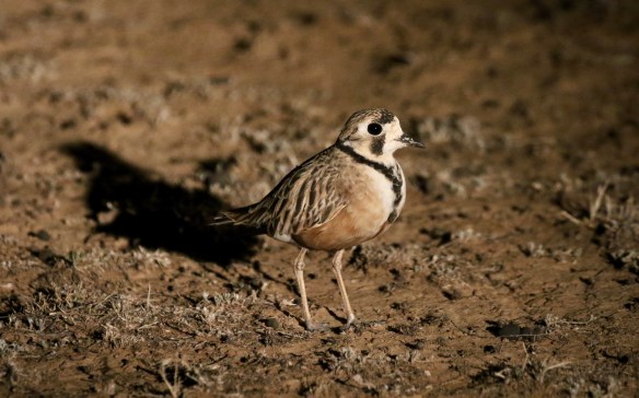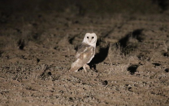 Als de zon onder is gaat het echte werk beginnen: Beide jeeps hebben zowel aan de voorkant als aan de zijkanten enorme lampen waarmee we kriskras door de graslanden rijden hopend dat de spotlight een vogel vindt. Na een uur vinden we de eerste vogels; een groepje Banded Lapwings (steltlopers van de droge vlaktes) en even later een Eastern Barn Owl.