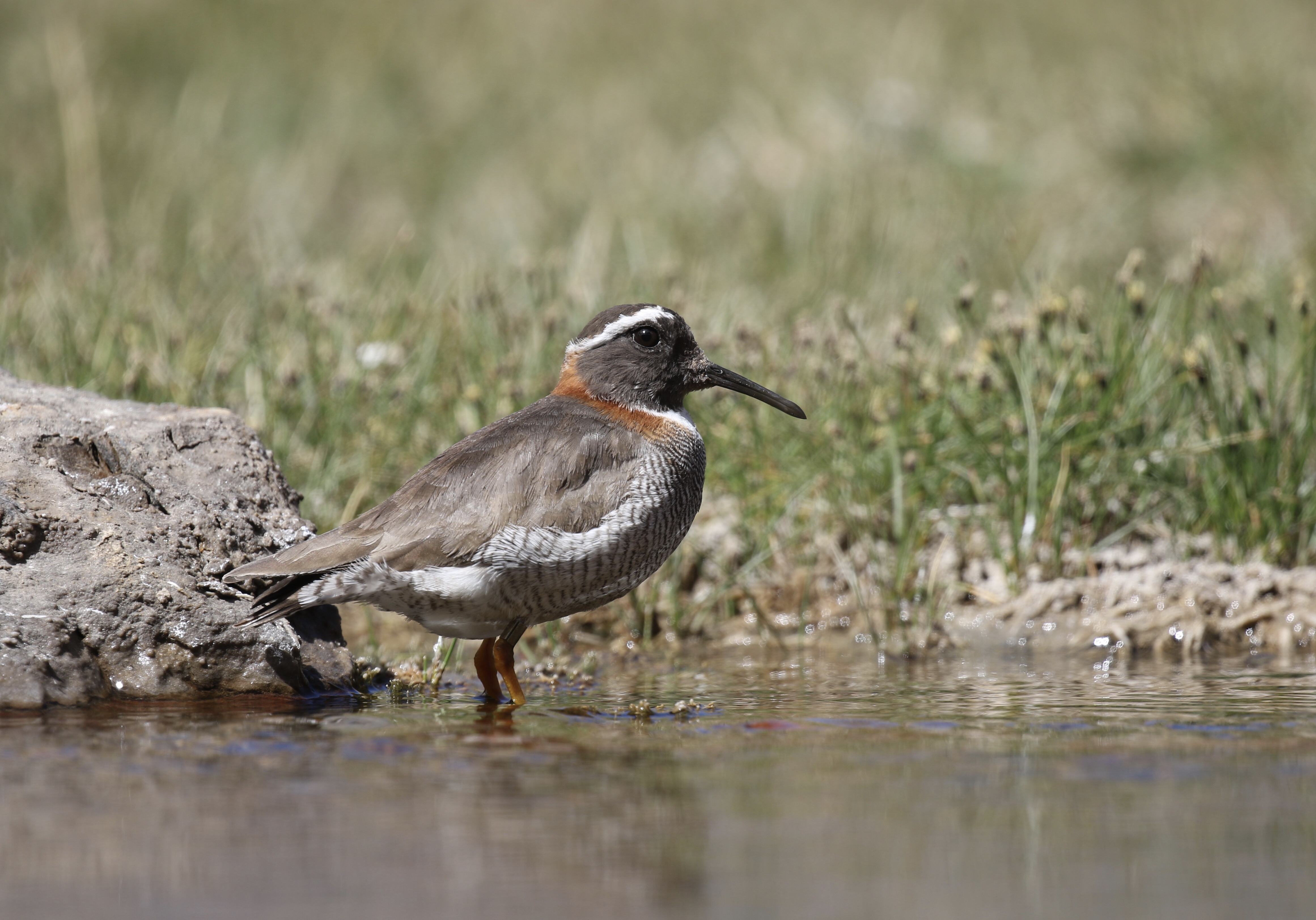 De mooiste soorten vinden we als we nog hoger gaan tot de drassige vlaktes waar het smeltwater zich uit het sneeuw en ijs van de toppen heeft verzameld; hier vinden we meerdere baltsende Grey-breasted Seedsnipes en laat een paartje Diademed Sandplover zich fantastisch bekijken.