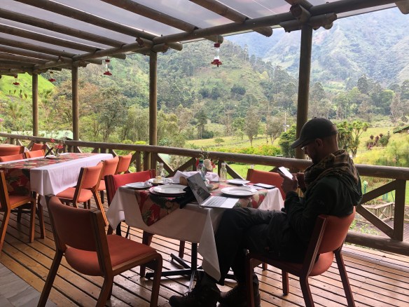 In een ander dal rijden we omhoog voor de Tolima Dove en de Tolima Blossomcrown. De duif kunnen we redelijk eenvoudig vinden maar de Blossomcrown is een snelle kolibrie die af en toe langs komt bij een aantal struiken die in bloei staan. Vaak is vogels kijken een kwestie van geduld en ook nu weer worden we na lang staren naar rode bloemetjes gelukkig beloond! Iets verder langs de weg vieren we het succes met een goede brunch bij een restaurant waar ook overal Hummingbird feeders hangen. Het zou ons niet verbazen als de Blossomcrown over een paar jaar geen lastige soort meer is maar hier rustig met een kopje koffie er bij kan worden gevonden.