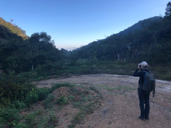 Een van deze soorten is de Fuertes’s Parrot, een Critically Endangered papegaai waar inmiddels een dal van bekend is waar ze vaak rond 8 uur ‘s morgens doorheen komen vliegen. We hebben geluk; want niet alleen horen we ze even voor 8en aan komen vliegen, ze landen vlak voor ons in een boompje en laten zich heel goed bekijken. Na het missen van de Blue-billed Curassow de dag ervoor voelt dit extra goed!
